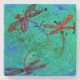 Gorgeous red and blue dragonflies on a mottled turquoise blue and green background. From my original dragonfly artwork. LyndseyArt