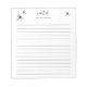 This notepad features Destei's black silhouette dragonfly design. There are three dragonflies on the top while most of the notepad is lined with thin black lines. The top of the notepad also has personalizable text areas for a title and for a name.