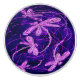 Gorgeous soft pink winged dragonflies flit on a vibrant purple background.