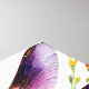 This floral nature artwork features a colourful dragonfly in shades of purple, blue, and gold against a floral background of vibrant, brightly coloured flowers. A beautiful multicolor insect portrait.