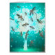 Gorgeous metallic lookiing dragonflies flitting around a beautiful glowing tree set in a turquoise realm.