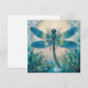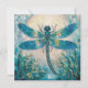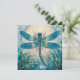 Beautiful Dragonfly art gallery card. The dragonfly is painted in tranquil greens and blues set against a backdrop of warm peachy colours. The foliage is set in a mosaic style that beautifully compliments the highly detailed artwork of the dragonfly. A perfect greeting card for those who love dragonflies or, artistically rendered subjects matter. This design is also available in a jigsaw puzzle.