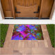 A happy brightly coloured door mat with gorgeous flitting dragonflies. You can add text or numbers to make it just right.