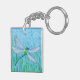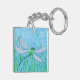 A watercolor of a green and blue dragonfly adorns this keychain!