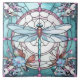 Dragonfly Light Blue and White Stained Glass Tile