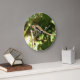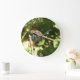 This awesome clock features a photograph of a beautiful common darter (Sympetrum striolatum) dragonfly. This species is mainly brown with red spots on its body and beautiful big brown eyes. The dragonfly is sitting on a twig with its wings stretched forward, revealing their intricate beauty. The photograph was taken using macro photography for a stunningly detailed result.