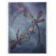 Gorgeous purple and soft green dragonflies flit around on a mystical colored sky.