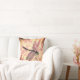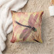 Throw pillow with vintage image of a dragonfly in colors of muted yellow, pink and beige.