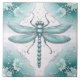 Dragonfly Turquoise and White Flower Art Teal Tile