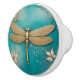 Dragonfly Turquoise Teal & Gold Faux Relief Asian Ceramic Knob