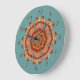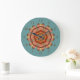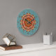 This clock features a circular mandala design created from a photograph of the wing of a Pennant Dragonfly. Shown on a customisable turquoise background, there are delicate hues of pink, gold, terracotta and yellow. If you'd prefer our clock without numbers, you can clear them under "personalise it".