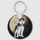 Dramatic Black and White Husky against Full Moon Key Ring