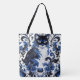 Dramatic Blue Deco Cat Large Shoulder Tote