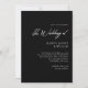Make a statement with this dramatically elegant wedding invitation featuring white script on a luxurious black background.
