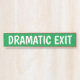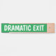 This funny sign can be hung on the back of front doors, dorm room exits, sliding doors, auditoriums, stage doors, classroom exits, office doors and almost anywhere to make your guests, students, or actors laugh when they go outside or leave your home or office. The graphic says Dramatic Exit in white text against a green background.