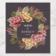 Elegant watercolor flowers in pink and gold with beautiful greenery on a dark eggplant background, perfect for wedding bridal showers, rehearsal dinners, wedding receptions or any special occasion. MATCHING items in our store.
