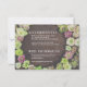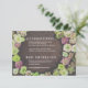 Customise this wedding invitation insert to give guest additional information. Shown with wedding website and hotel block information. Crisp white text on a dark wood background, surrounded by a ring of live blooms make this card a standout.