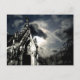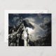 A beautiful cemetery scene with a gothic crypt and a dark dramatic sky on a post card. Pretty gothic style.