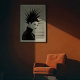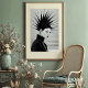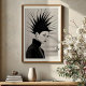 Command attention with this stunning black and white art print, a captivating blend of high fashion and artistic expression. This striking portrait features a woman adorned with an extraordinary, sculptural headpiece that bursts outwards in sharp, dramatic spikes, creating an unforgettable silhouette. Her porcelain-like skin, intense dark lipstick, and meticulously applied eyeliner exude an enigmatic allure, while her sleek black high-collar garment, accented with a subtle chain, adds to her sophisticated presence. Rendered in high-contrast monochrome against a pristine light backdrop, this artwork emphasises form, texture, and the powerful graphic quality of the design. Perfect for modern living spaces, fashion studios, or any decor seeking a touch of unique elegance and bold artistry, this print is an ideal choice for art enthusiasts and those who appreciate iconic, avant-garde style.