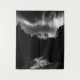 Black and white long exposure landscape photograph. Dramatic sky with snowy mountains and flowing river.