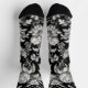 These socks have a monochrome toile pattern with a depth like carved marble glowing in a black night.