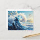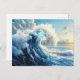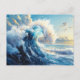 A powerful, cresting ocean wave glows with golden sunlight and glittering spray in this breathtaking coastal scene. Painted in vivid blues and warm pastels, the image captures the dynamic energy of the sea with a painterly style.