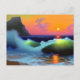 Pretty blue and green dramatic ocean waves and sunset ethereal ai generated art. Blue waves and orange and pink skies. generativeconent