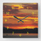 Dramatic Orange Sunset Landscape Square Wall Clock
