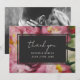 Dramatic Pink Floral Wedding Photo Thank You Card