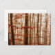 Dramatic red foggy winter snowless forest postcard