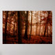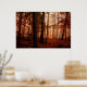 Dramatic red foggy winter snowless forest poster