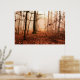 Dramatic red foggy winter snowless forest poster