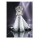 The image highlights the intricate design of the gown, which blends sculptural detailing with sparkling accents that reflect light in mesmerising ways. The wide flowing skirt and ornate bodice transform the subject into a vision of fashion artistry, while the dramatic lighting enhances the sense of mystery and spectacle. This print is perfect for anyone with an eye for couture, avant-garde style, or runway-inspired artwork.