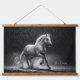 Dramatic White Horse Galloping in Rain Hanging Tapestry