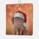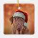 Drawing dog Dogue de Bordeaux in red hat of Santa Ceramic Ornament