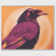 Drawing of a maroon black raven on yellow orange background