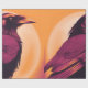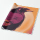Drawing of a black raven on yellow orange wrapping paper