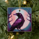Drawing of a raven on grey blue background ceramic ornament
