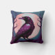 Drawing of a raven on grey blue background cushion