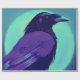 Drawing of a purple black orange raven on neon blue green turquoise background