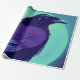 Drawing of a raven on neon blue background wrapping paper