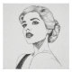 Black and white illustration of an elegant woman with a retro style. It is portrayed in profile, with an intense look and dark lips. Her hair is topped in wavy waves, reminiscent of the glamorous style of the 50s. The illustration shows a high level of detail in the facial features and highlights the grace and sophistication of the subject through expressive line work.