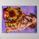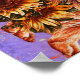 Drawing of Bulldog Sunflowers on Purple Paint Poster