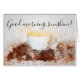 Wake up with this funny "good morning sunshine" greeting or give it to a friend. Perfect for coffee lovers.