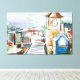 This canvas print displays a far off view looking over a small village town with buildings, trees and various abstract colours with an acrylic painting like style and hand drawing theme in this oil paint like style and theme. Our prints are printed with the highest resolution on cotton-poly archival paper, for a long-lasting fade resistant print measures. This print will make for the perfect addition to brighten up any home or office.