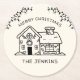 Drawn Funny Merry Christmas Gingerbread House Round Paper Coaster