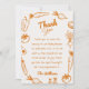 As you see this baby shower thank you cards features the orange locally grown vegie theme. With hand drawn vegetables and hand written script of thank you and thank you paragraph template all in orange. With family last name in the bottom. All of this design template is easily customisable by clicking on the personalisation button.