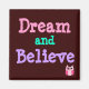 Pink retro style owl with the phrase, Dream and Believe. Cute gift for the owl fans.