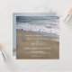 A romantic wedding invitation featuring an image of the waves flowing on the sand on a dreamy day. Beautiful if you are planning a beach wedding.