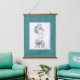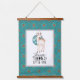 Baby watercolor deer and blue moon graphic with "Dream Big Little One" typography style quote and blue boho border. A wood topped tapestry that makes a great addition to nursery or kids room walls.